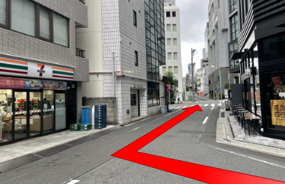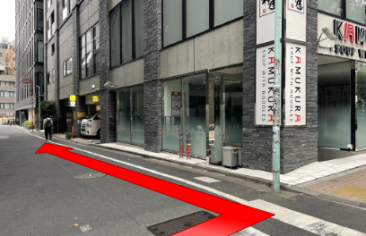 信号を渡らずに美竹通りを右折してください。