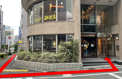 すぐに「コメダ珈琲店 渋谷宮益坂上店」が見えますので、そちらのビルの5階へお越しください。新幹線・飛行機でお越しの方