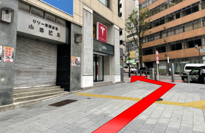 表参道駅B2出口を出てそのまま青山通りの歩道を直進してください。